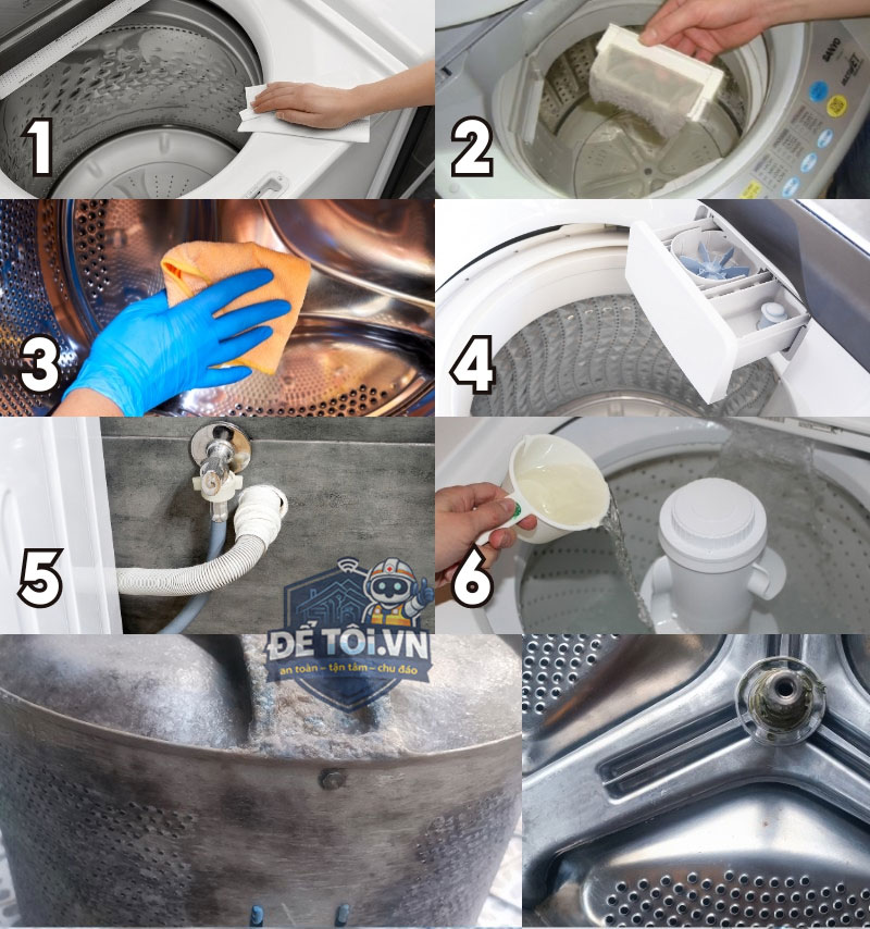 - Vệ sinh lồng giặt 6–9 tháng/lần