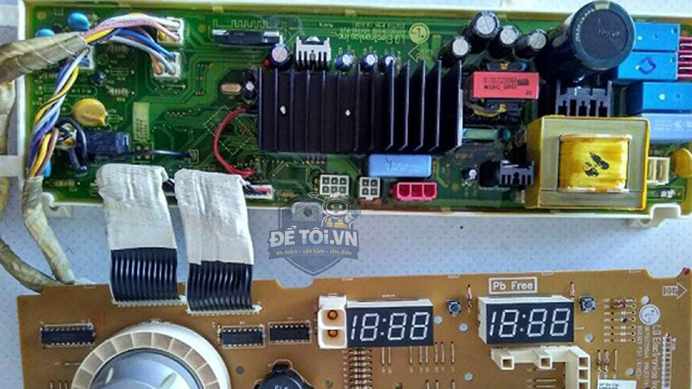 Bo mạch là “bộ não” của máy giặt. Khi mạch xử lý tín hiệu lỗi, hệ thống có thể hiểu sai mức nước và kích hoạt cảnh báo FE.