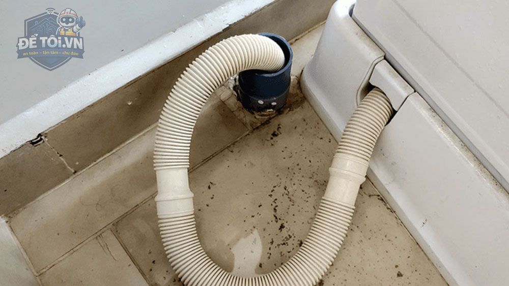 Đây là việc đầu tiên nên làm. Nhiều gia đình đặt máy sát tường khiến ống xả bị đè hoặc gập. Khi nước không thể lưu thông, máy sẽ báo lỗi OE.